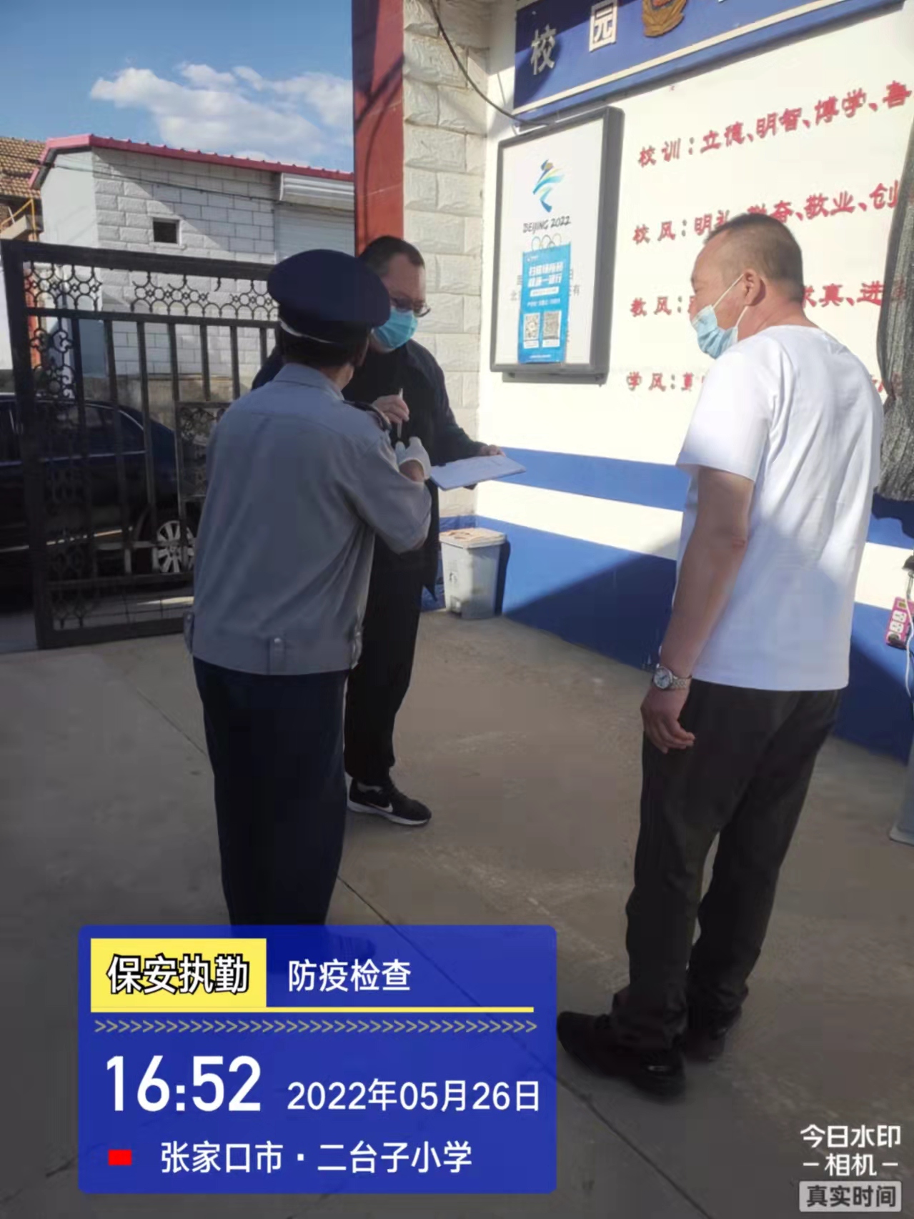會后,我公司迅速召開“疫情期間學校門衛(wèi)安全防控工作要求”的會議,制定了校園安全防疫規(guī)定:疫情防控期間,校園保安隊員必須穿制服,規(guī)范佩戴“三件套”(防護隔離面罩、N95口罩、一次性PVC手套);進出校園的師生必須測量體溫,外來人員需登記、測溫、掃碼(幸福張家口,呈綠碼)、且持7日內(nèi)核酸陰性檢測結(jié)果;保安室需保持干凈整潔,物品擺放有序,勤開窗通風,定期噴灑消毒藥水。為此,公司特成立校園防疫檢查小組,由副經(jīng)理帶隊,協(xié)同主管大隊長對經(jīng)開區(qū)所有中小學校安保崗位進行防疫工作檢查,檢查期間,發(fā)現(xiàn)問題,現(xiàn)場處理,并及時與校方領(lǐng)導溝通,杜絕同樣問題再次出現(xiàn),確保校園防疫安保工作萬無一失,為各校師生鑄就一道安全防線!
